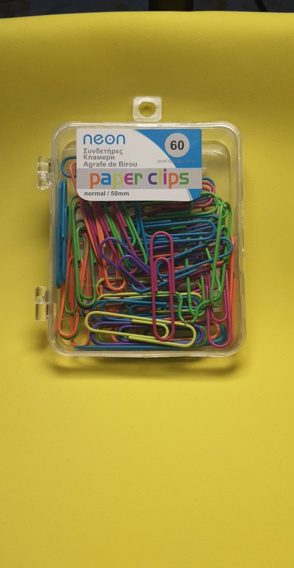 60 adet, 50mm boyutunda renkli neon ataş içeren paket, kağıtları düzenlemek için uygundur.