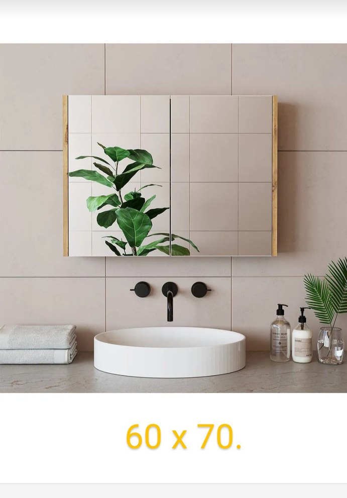 60 x 70 cm ölçülerinde, beyaz çerçeveli duvar aynası. Banyo veya yaşam alanları için uygundur.