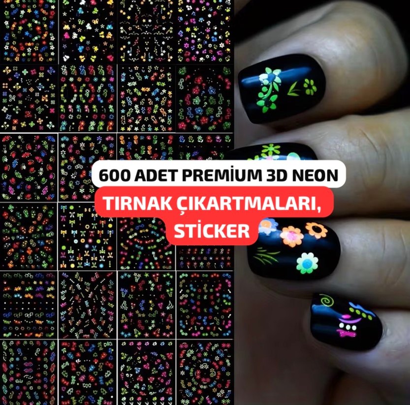 600 Adet Premium 3D Neon Tırnak Çıkartması Tırnak Sticker