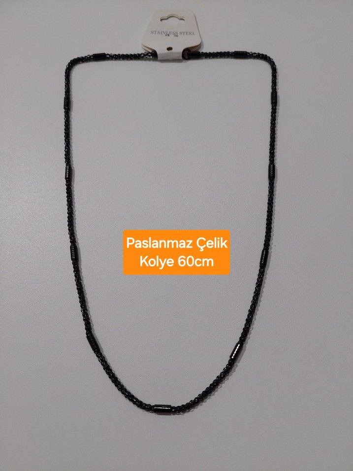 60cm Siyah Paslanmaz Çelik Zincir Kolye