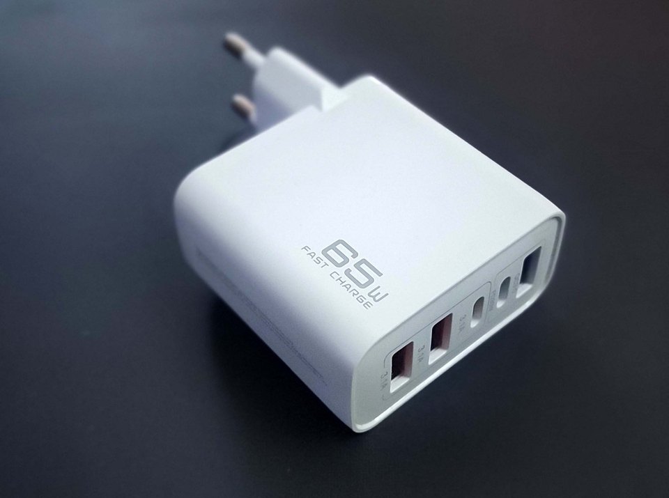 65W hızlı şarj destekli beyaz çoklu telefon şarj cihazı. Çoklu USB portlarıyla pratik kullanım sunar. Kompakt tasarımlıdır. ⚡