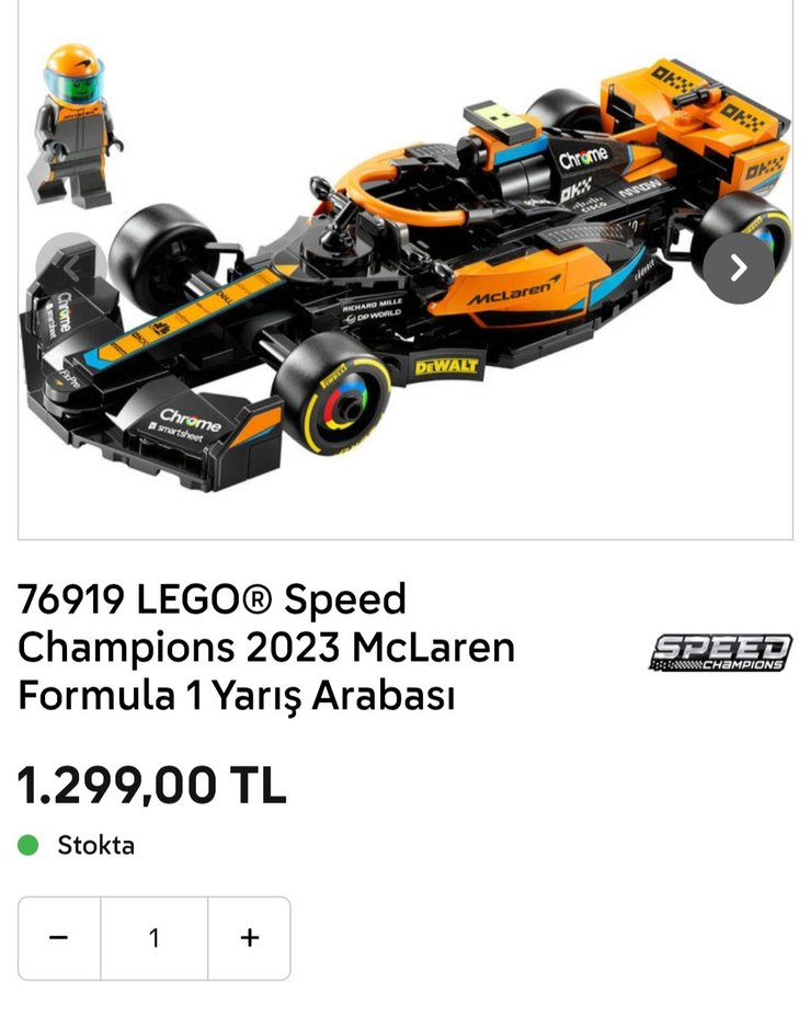 6919 LEGO Speed Champions 2023 McLaren Formula 1 yarış arabası, detaylı tasarıma sahip ve sürücü minifigürü içerir. Siyah, canlı turuncu ve mavi detaylıdır. ️ fiyatı piyasa göre baya uygundur