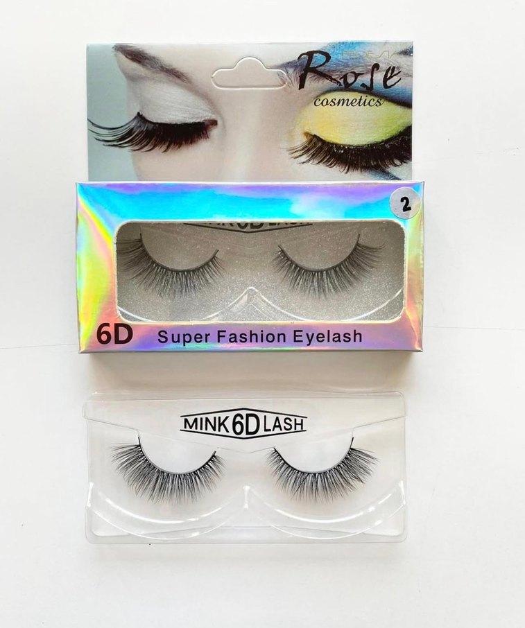 Cosmelic 6D mink renkli takma kirpikler, kolay uygulama için beyaz bantlı, moda bir görünüm sunar.