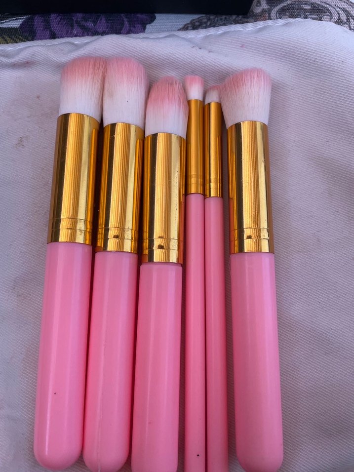 Pastel pembe renkte, yumuşak kıllı ve altın detaylı makyaj fırçası seti. Farklı boyutlarda fırçalar içerir, makyaj uygulaması için uygundur.3 tanesi hiç kullanılmadı