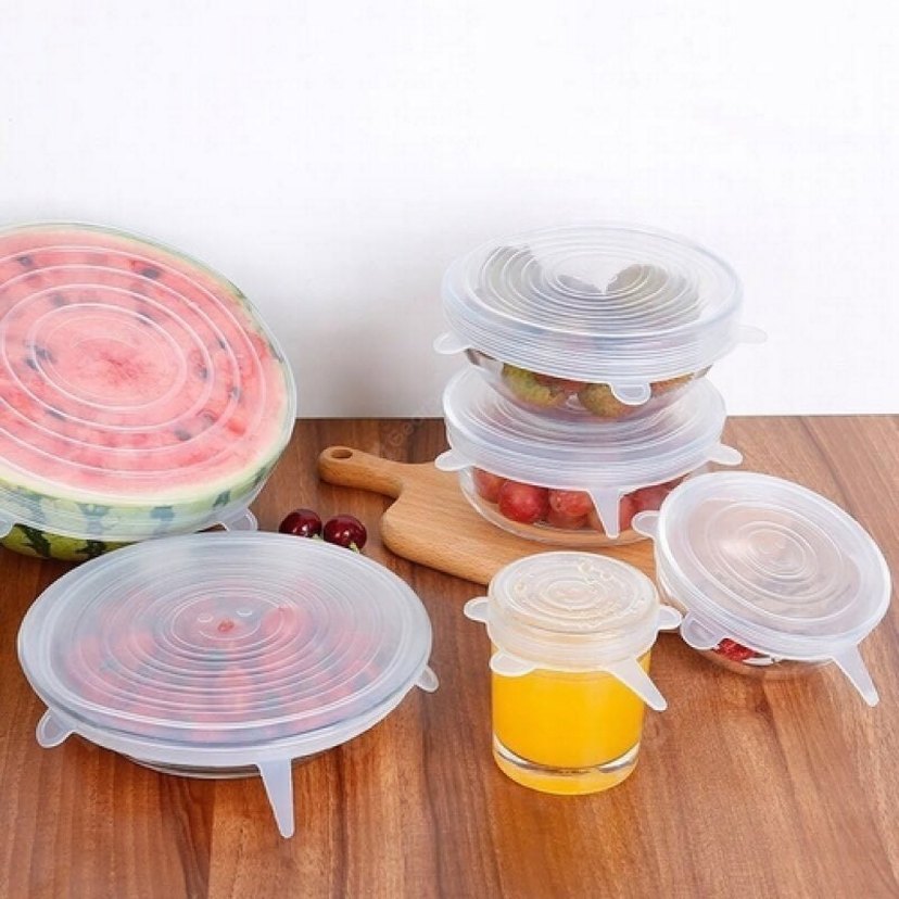 Farklı boylarda esnek silikon kapak seti, yiyecek kaplarını ve bardakları kapatmak için. Hafif ve çok renkli tasarım.