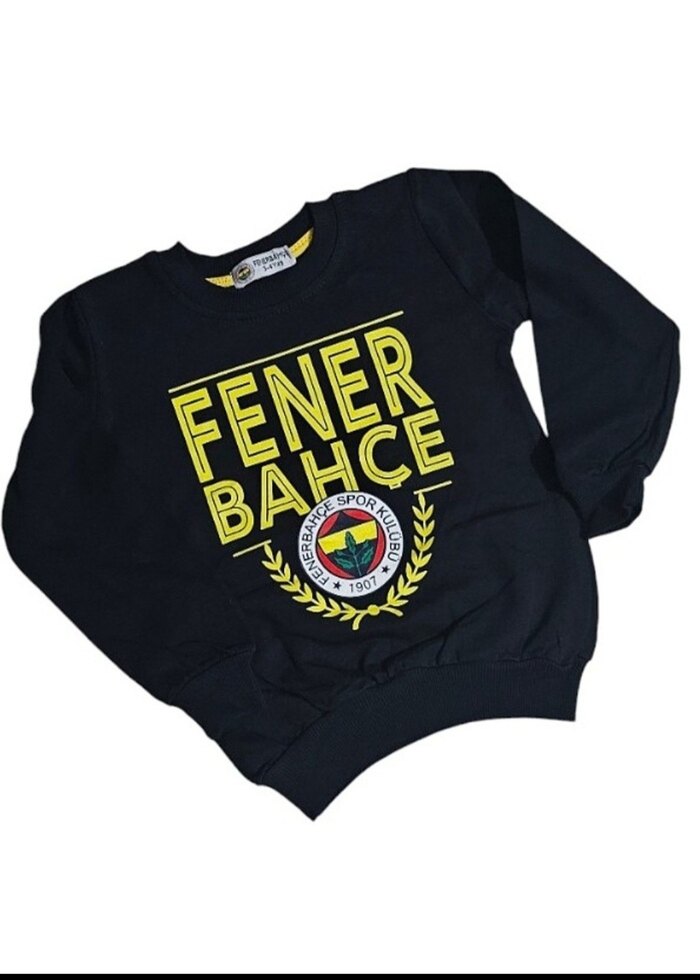 Siyah, uzun kollu, yuvarlak yaka, bol kesim ve baskılı Fenerbahçe logosu olan yumuşak fleece erkek çocuk sweatshirtü. Cırt cırt detaylı, günlük sokak stili için uygundur. ⚽