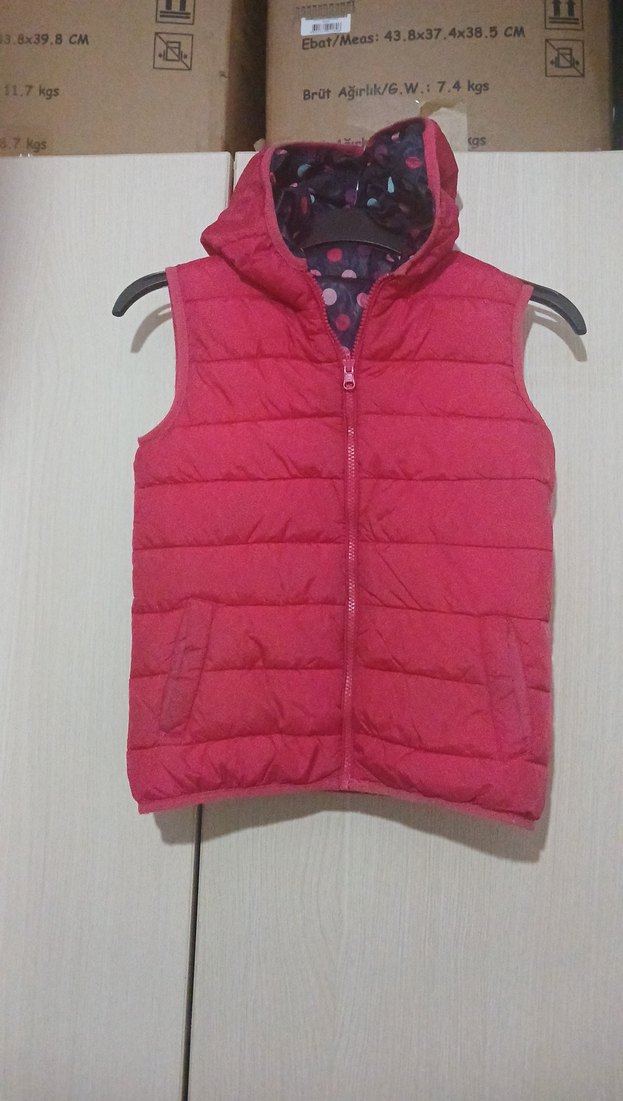 7-8 Yaş Kız Çocuk Kapüşonlu Pembe Mont Yelek
