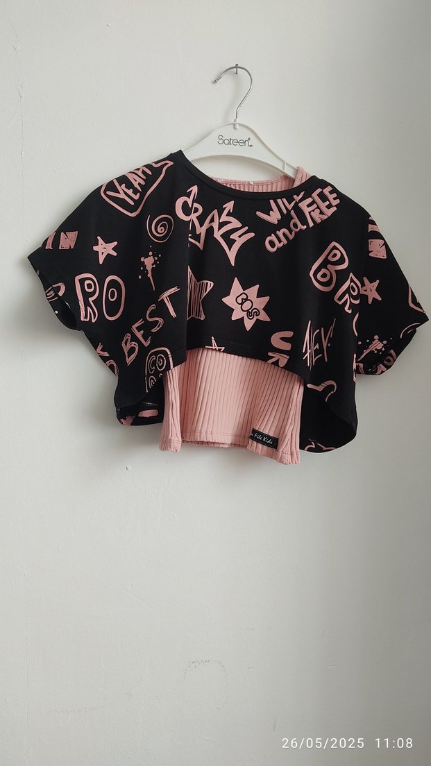 Bolero, gevşek kesim, yuvarlak yaka ve kısa kolludur. Koyu pembe baskılı, örme dokulu tekstil malzemeden yapılmıştır. az giyildi,hiç bir deformasyonu yoktur