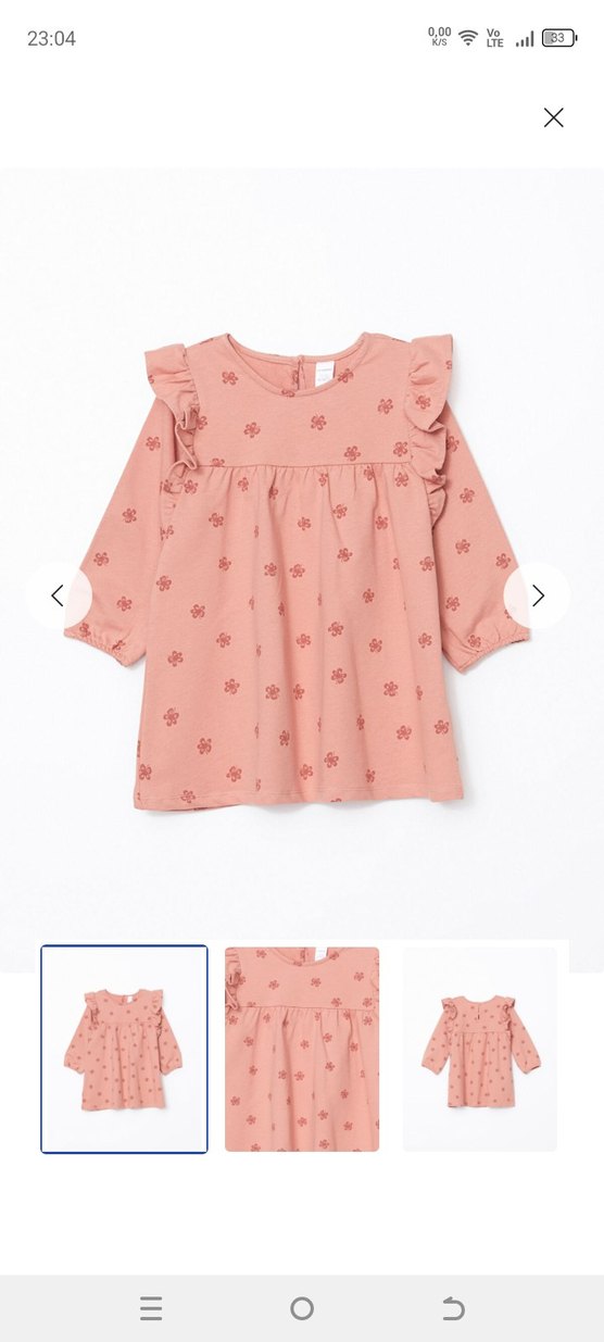 7/8 yaş Pastel pembe renkte, uzun kollu ve fırfır detaylı kız çocuk elbisesi, zarif baskılı desene sahiptir. Yumuşak ve rahat bir yapıya sahiptir.