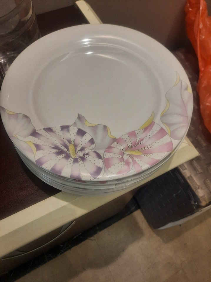 7 adet Çiçek Desenli Beyaz Yemek Tabağı