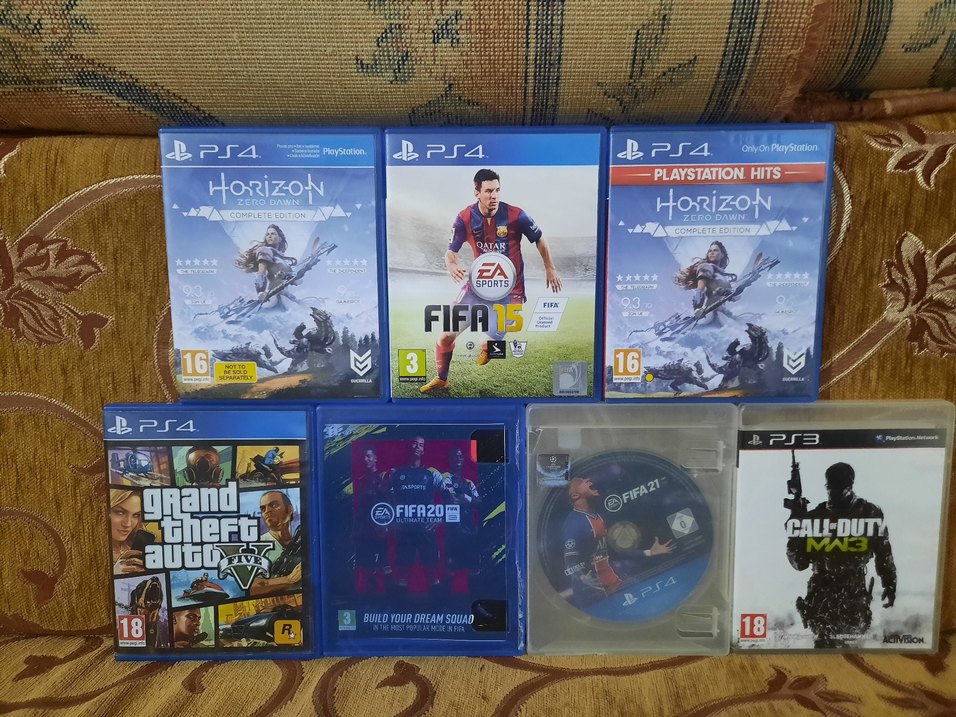 • Elimdeki 7 adet kutulu oyunu, kusurlarını belirterek uygun fiyata toplu olarak satıyorum. Fiyat tüm set içindir: ❗️Horizon Zero Dawn Complete Edition (PS4): Her iki disk de kutulu ve 2'şer adet kitapçıkları mevcuttur. Kodların kullanım durumunu bilmiyorum. Diskler kopyalama sırasında hata vermektedir; koleksiyonluk, kutu amaçlı veya tamir amaçlı değerlendirilebilir. ❗️1 Adet FIFA 15 (PS4): Kutulu. Gösteri maçının ortasında hata verip oyundan atmaktadır, diski sorunludur. ❗️1 Adet Call of Duty Modern Warfare 3 (PS3): Kutulu. Disk çiziktir ancak sorunsuz çalışmaktadır. Oyun dili Fransızca'dır. ❗️1 Adet Gta 5 (PS4): Kutulu. İçinde disk yoktur sadece orijinal kitapçığı vardır ❗️1 Adet Fifa 20 (PS4): Kutulu. Diskte bir kaç çizikler vardır ama sorunsuz çalışmaktadır ❗️1 Adet Fifa 21 (PS4): Kutulu. Diskte bir kaç çizikler mevcut ama oynamaya engel olmayan çiziklerdir ve sorunsuz çalışmaktadır.