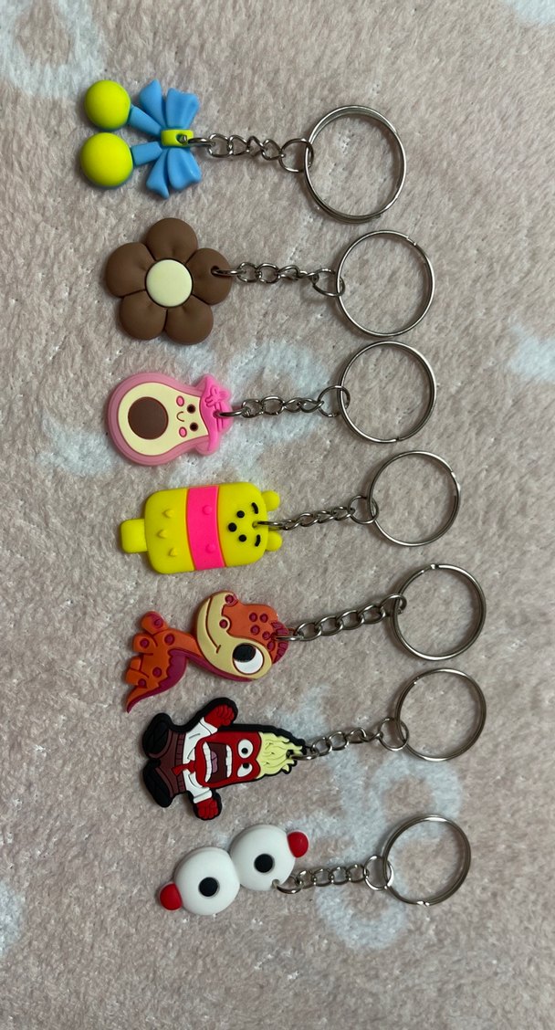Renkli ve pop kültür temalı, püsküllü bohem ve retro tarzda kadın anahtarlık seti.