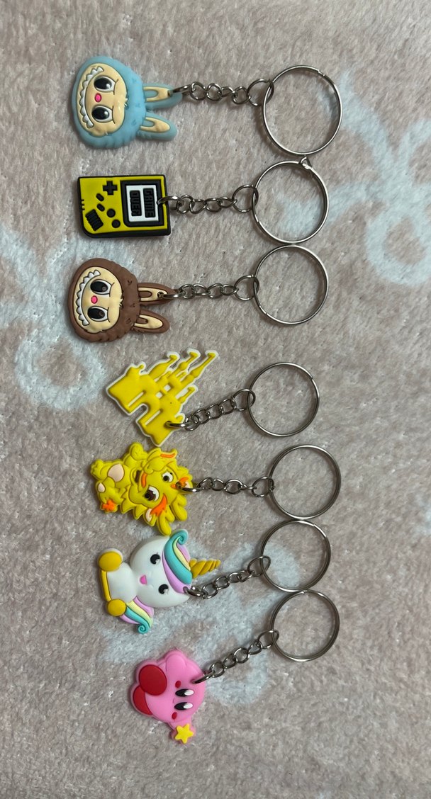 Detaylı zincirli, renkli pop kültür figürlü kadın anahtarlık seti. Rock punk havası taşıyan eğlenceli tasarımlar içerir.