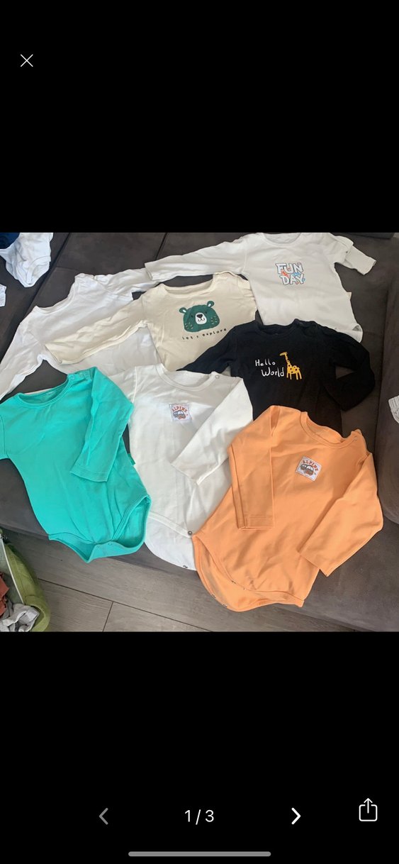 7 adet Uzun Kollu Beyaz Baskılı Bebek Body