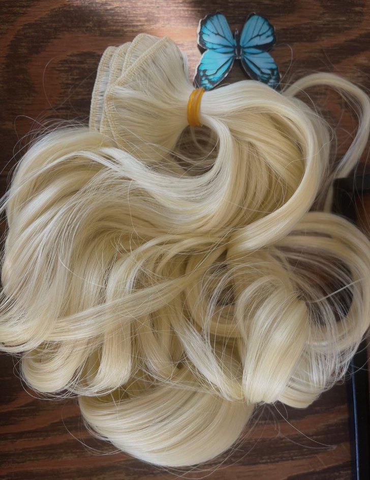 7 parça 60 cm sarı çıt çıt takma saç postiş. Tek renktir. gerçek-sentetik karışıktır. Platin sarıdır. yeni ve hiç açılmamıştır. sorunsuzdur. Mat ve dolgundur parlama yapmaz. Yapısı boyalı saç gibidir. Tek renktir,röfleli değildir
