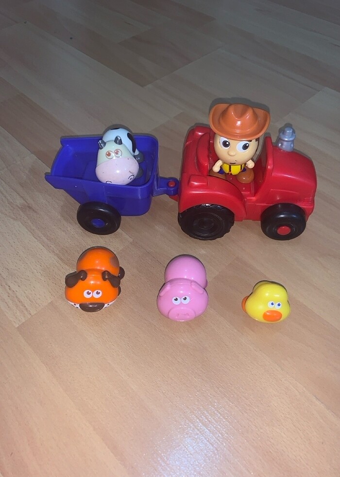 7 parça çiftlik seti hayvan ve insan figürü çırt çırt kafalı 360 derece döne biliyor ufak tefek çizikleri var ama kırık ve ya çalışmayan aksamı yok Blue box toyz marka 10 yıl önce kızıma almıştım