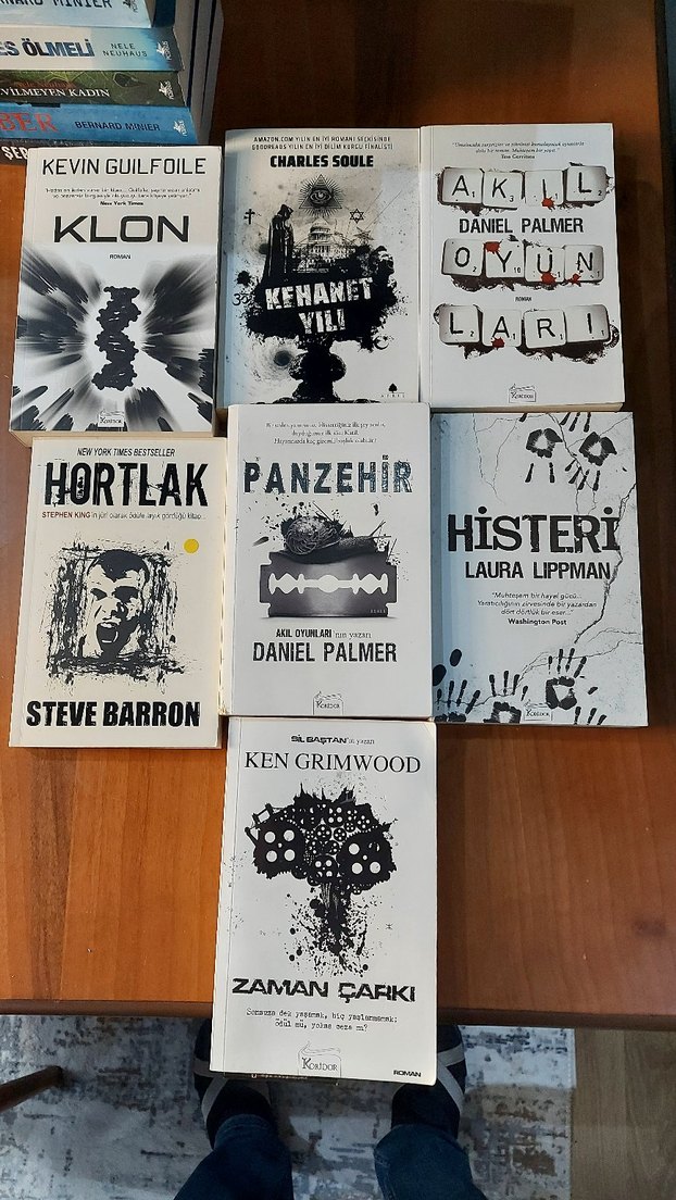 Çeşitli yazarlardan "KLON," "Kehanet Yılı" ve "Zaman Çarkı" gibi 7 roman kitabı seti.