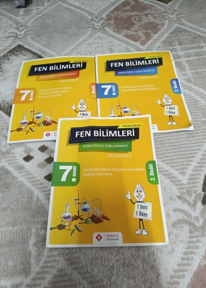7. Sınıf Fen Bilimleri Kazanım Merkezli Soru Bankası Seti 1.kitabin 25 sayfa kadar testi çözülmüştür kalanları temizdir