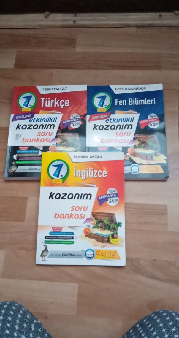 7. sınıf Türkçe, Fen Bilimleri ve İngilizce etkinlikli kazanım soru bankası seti. az çözülmüş