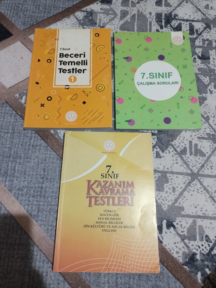 7. sınıf çeşitli dersler için beceri temelli testler ve çalışma soruları içeren kitap seti.