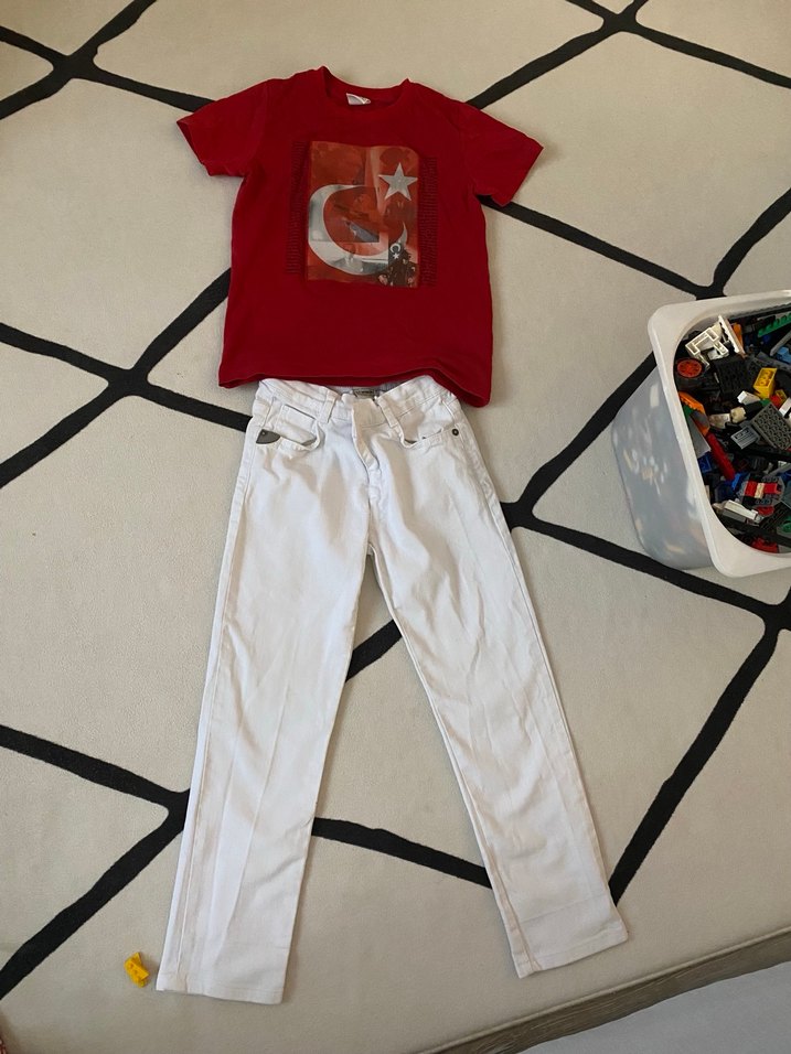 6-7 yaş üst 6-7 yaş alt pantolon boy bedenleri resimledim. Yepyeniler törende giyildi. Üst tshirt yanar dönerli resim değişiyor kıpırdayınca.