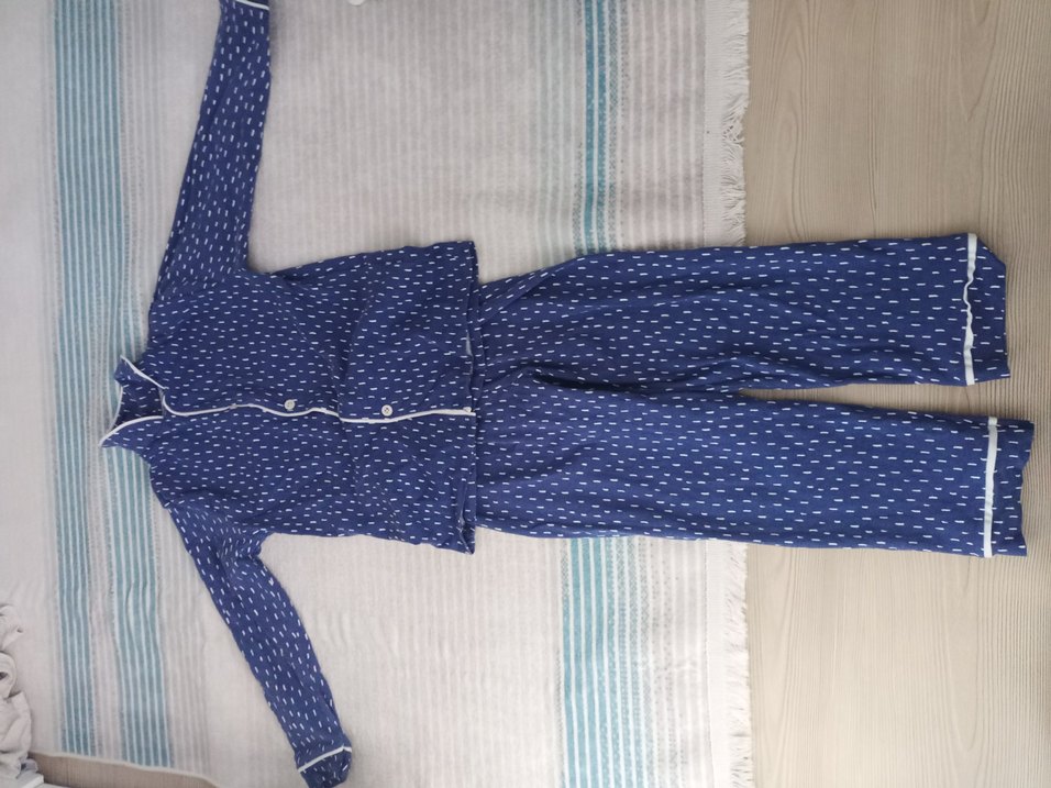lacivert renk ince pamuklu 7 yaşa uygun,düğmeli, uzun kollu erkek pijama takımı.