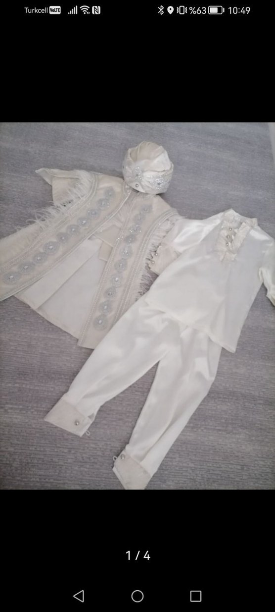 Diger markanın beyaz, nakışlı ve düğmeli, yakalı çocuk takımı, uzun kollu ve bohem tarzda, ipeksi dokuda. Gri tonlu yelek ve şapka ile tamamlanır. ✨