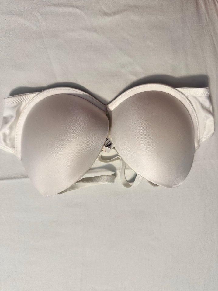 Beyaz, desen içermeyen minimalist sütyen, normal uzunlukta ve sade tasarıma sahip.
