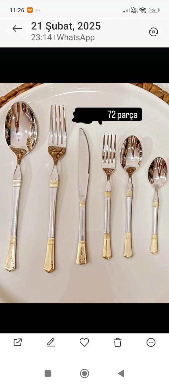 72 parçadan oluşan, altın renk detaylı çatal, kaşık ve bıçak seti. Dekoratif saplarıyla şık bir tasarıma sahiptir.