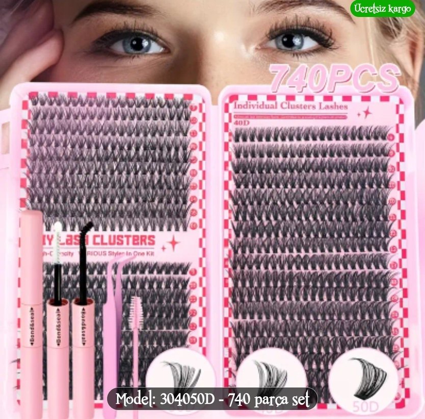740 Parça Pembe Takma Kirpik Seti