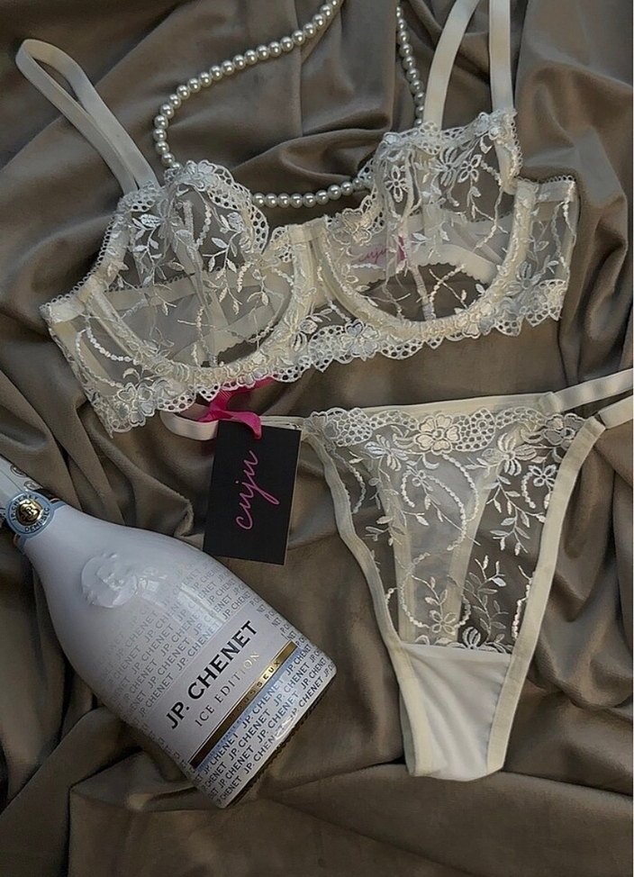 İnce askılı, kısa beyaz sütyen, zarif nakış desenleriyle vintage Paris tarzını yansıtıyor. Hafif ve şık tasarım. ✨
