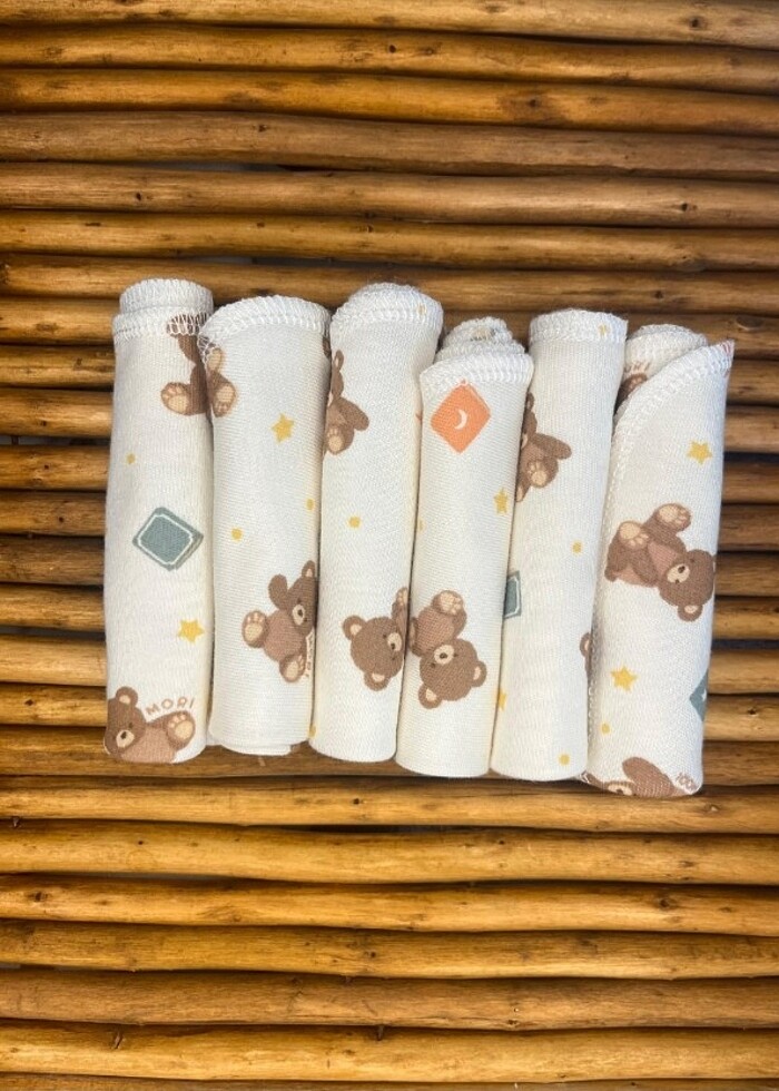 Yüzde yüz pamuk penye kumaştan sevgiyle üretilmiştir. Yumuşak penye kumaş dokusu çocuklarınızı rahatsız etmez ve çok kullanışlıdır. Hem siz hem çocuklarınız severek kullanabilir. 20×20 ölçülerindedir. Yedili paket halinde gönderilir.
