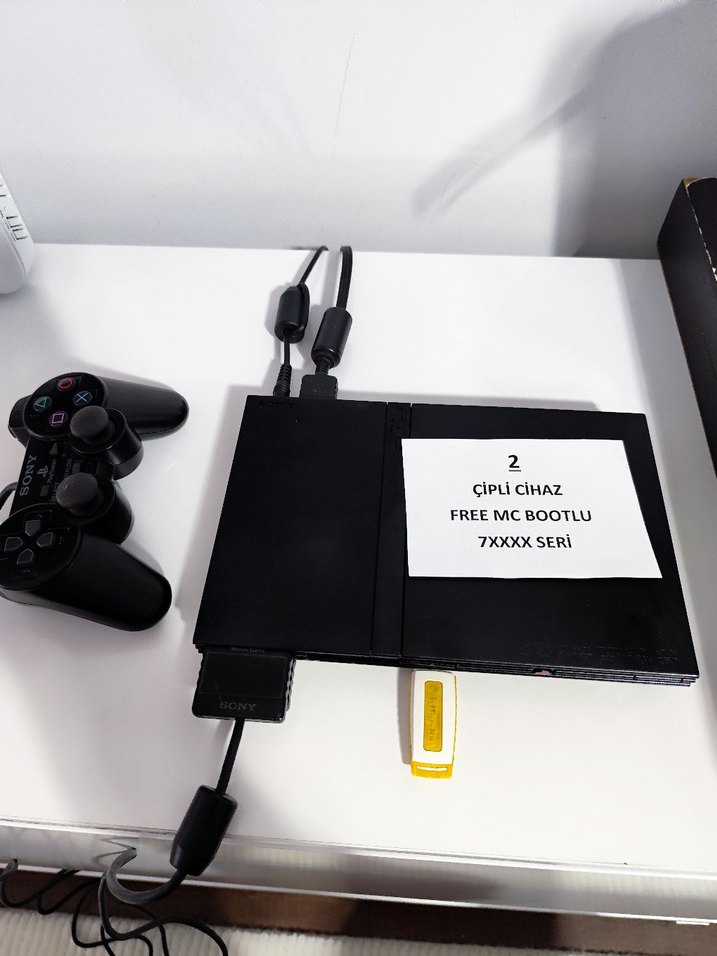 7XXXX serisi FreeMC bootlu çipli PlayStation konsoludur. kontrolcü ve USB bağlantısı ile birlikte gelir. yanında memory kartı dahildir.kopya ve çekme oyun da oynatır.