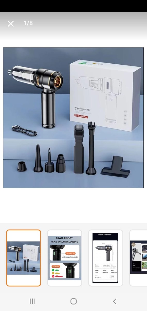 Fırçasız motorlu kompakt siyah el süpürgesi, çeşitli temizleme başlıkları ve USB şarj kablosu ile birlikte gelir. Güç göstergesi bulunur. çekim gücü oldukça kuvvetlidir şarjı uzun gider