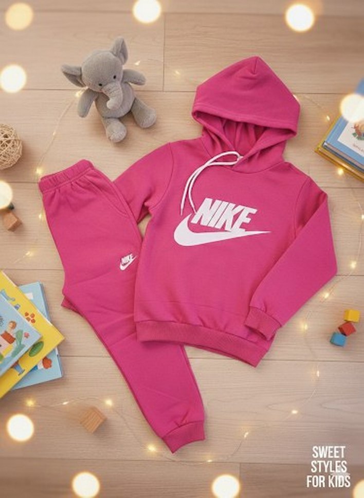 Pembe renkli Nike kapüşonlu sweatshirt ve eşofman altı, rahat kesim ve yumuşak, sıcak kumaştan üretilmiştir. Canlı baskılı logo ile şık ve rahat bir stil sunar.