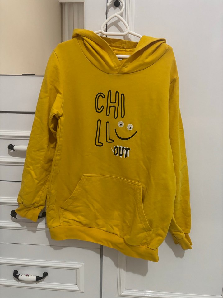 8.9 yaş Sarı Kapüşonlu Sweatshirt LCW bi iki kez kullanıldı sıfırdan farksız kanguru cepli rengi çok güzel canlı 6 yaştan itibaren kullanılabilir uygun fiyatlı ürünlerimi kaçırmayın derim daha fazlası için dolabımı inceleyiniz