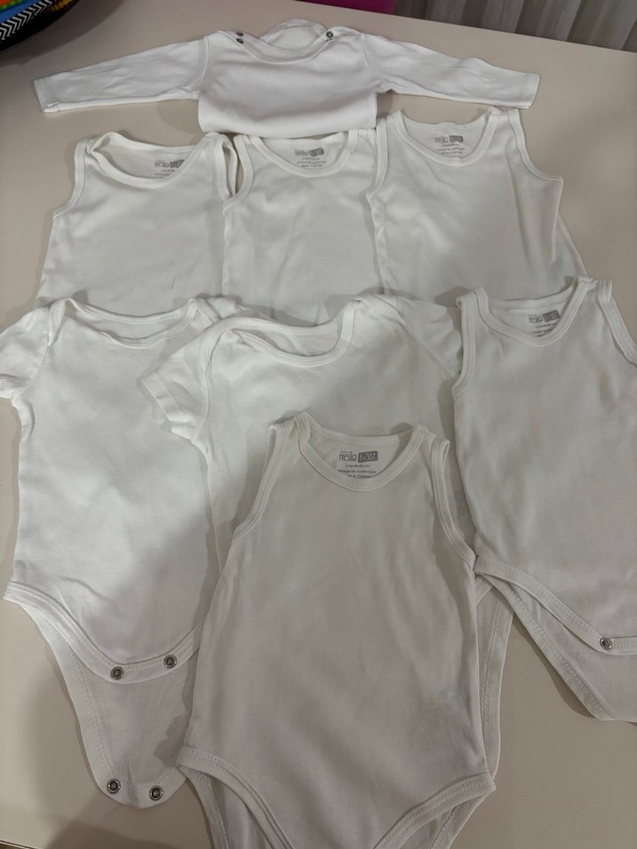 8 adet 6 ay Beyaz Pamuklu Bebek Çıtçıtlı Body