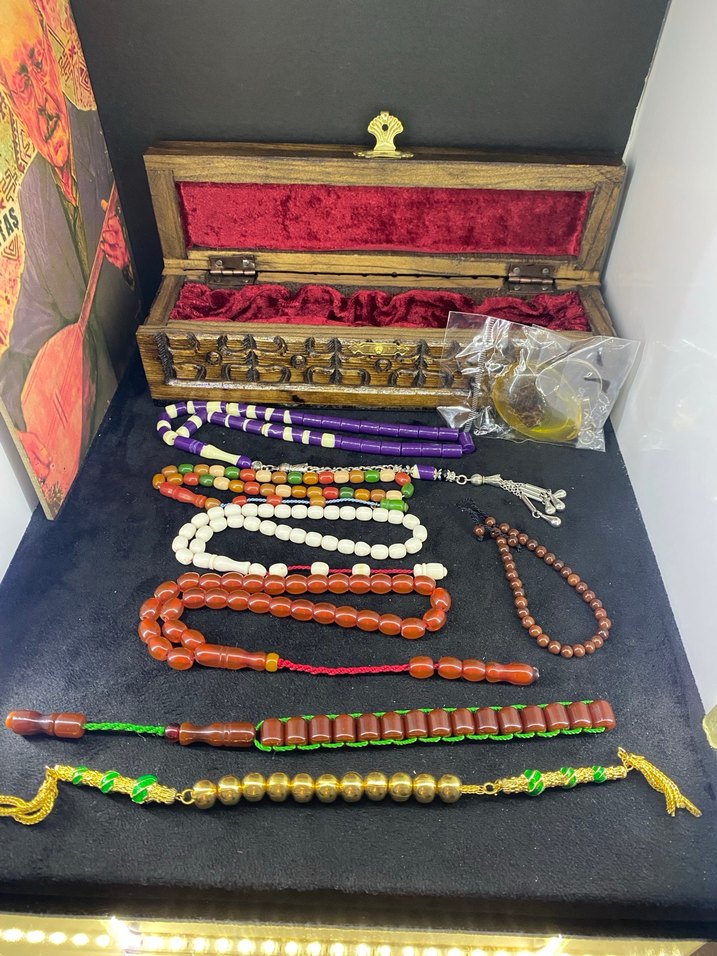 6 adet tesbih 1 adet kelebek fosilli anahtarlık1 adet kuka bileklik