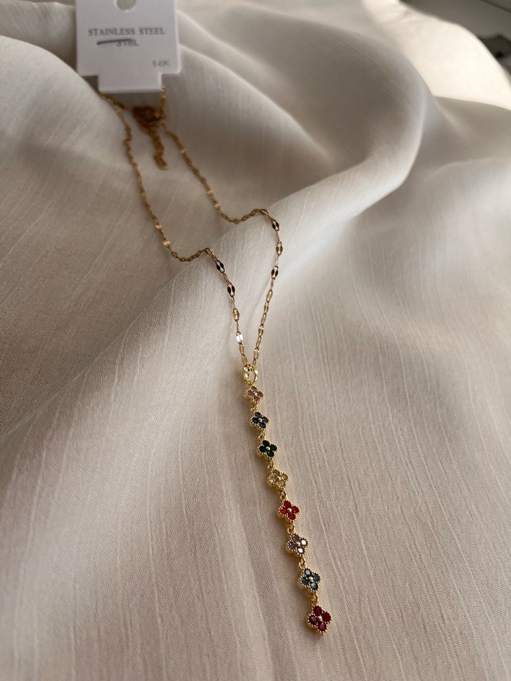 8 Çiçek taşlı gold kaplama çelik kolye