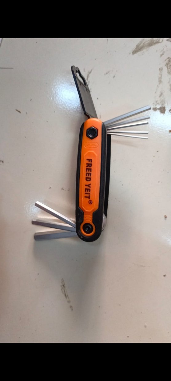 Turuncu renkte, katlanabilir çoklu alyan anahtarları içeren kompakt ve taşınabilir bir takım.