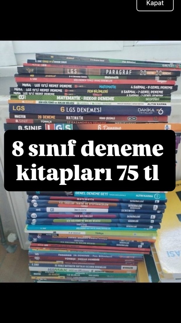 8.sınıf denemeler tane fiyatı 75 tldir