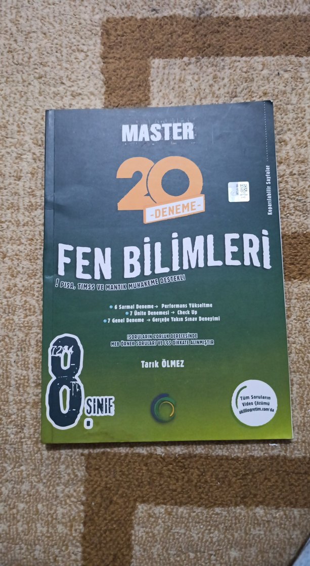 8. sınıf fen bilimleri için 20 deneme sınavı içeren, performans artırıcı ve video çözümlü test kitabı. altı biraz yıprandı onun dışında sıkıntısı yoktur.