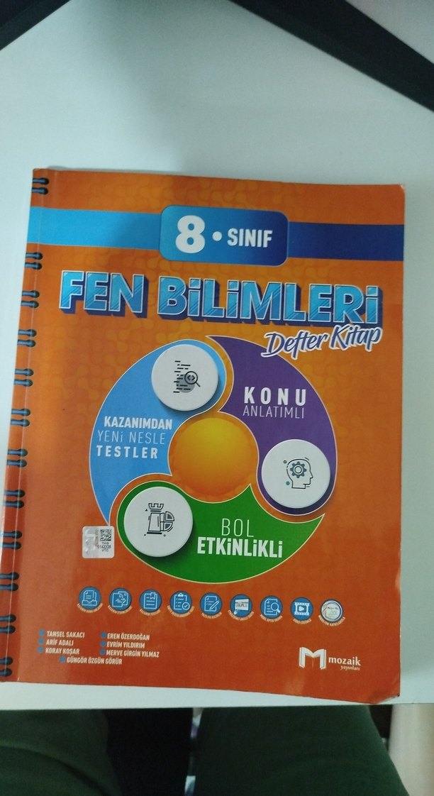 8. sınıf fen bilimleri konu anlatımlı defter kitap, bol test ve etkinlik içerir, kazanımdan yeni nesle uyumludur. yarısı doludur