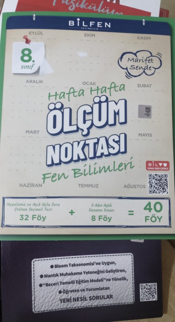 8. sınıf fen bilimleri kitabı, Bloom Taksonomisi'ne uygun ve mantık muhakeme yeteneğini geliştiren çoktan seçmeli testler içerir. 32 test sayfası ve 8 aylık deneme sınavı olmak üzere toplam 40 föy bulunur.