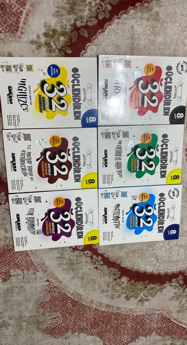 8. sınıf için matematik, Türkçe gibi dersleri içeren 32 kitaplık sınav hazırlık seti. Becerileri güçlendirmeye yönelik hazırlanmıştır. Türkçe nin ilk 6 haftası çözülmüştür . Din kültürünün sadece 1 hafta çözülmüştür diğerleri temiz