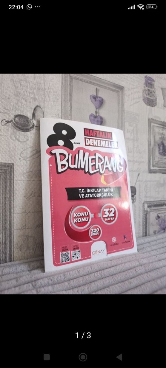 8. sınıf için pembe ve gri renkli haftalık deneme kitabı, T.C. İnkılap Tarihi ve Atatürkçülük konularında 32 hafta boyunca 320 soru içerir.