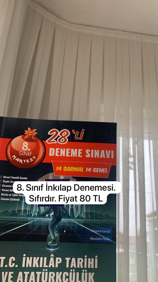 8. sınıf için 28 denemeden oluşan, 14 sarmal ve 14 genel sınav içeren yeni bir inkılap denemesi kitabıdır. Fiyatı 80 TL. SIFIRDIR ÇÖZÜLMEMİŞTİR
