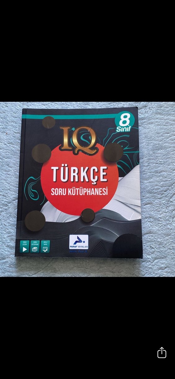 8.Sınıf IQ soru kütüphanesi Türkçe Paraf Yayınları. Kitabın yarıya yakın kısmı çözülmüştür.