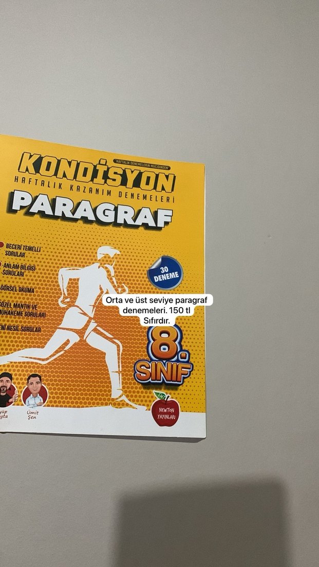 8. sınıf öğrencileri için orta ve üst seviye paragraf becerileri üzerine haftalık 30 denemeden oluşan kitap. Fiyatı 150 TL.
