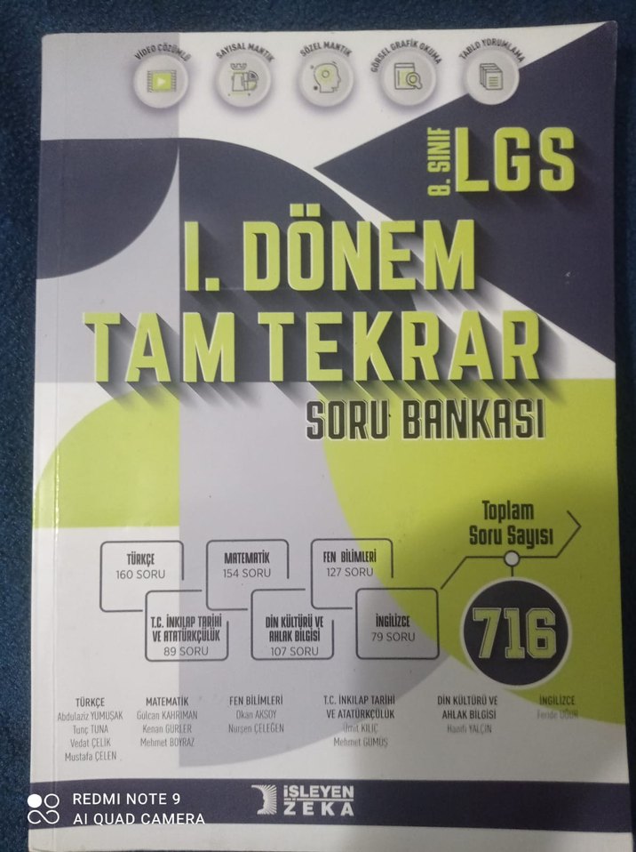 8. sınıf LGS 1. dönem tam tekrar soru bankası, toplam 716 soru içerir ve Türkçe, Matematik, Fen Bilimleri, Sosyal Bilgiler, İngilizce konularını kapsar.